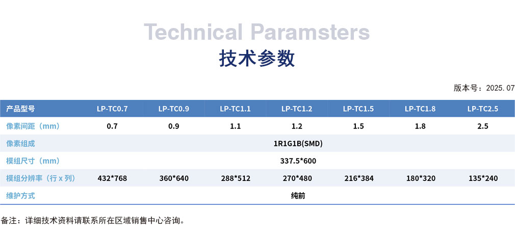 點間距 : P0.7/P0.9/P1.1/P1.2/P1.5/P1.8/P2.5