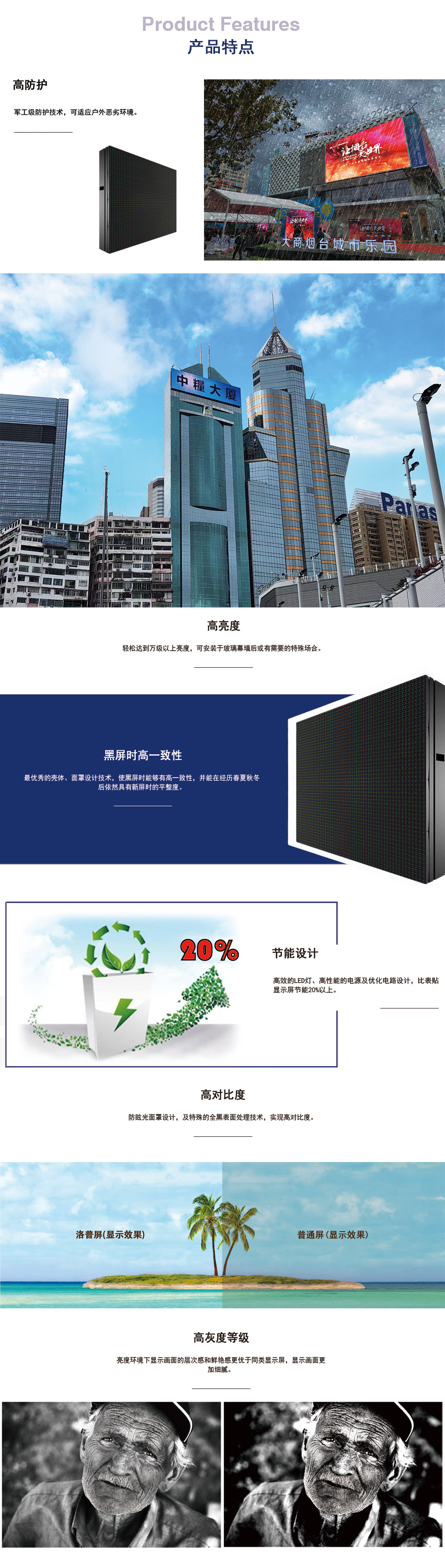 7. 高灰度等級,亮度環境下顯示畫面的層次感和鮮艷感更優于同類顯示屏,顯示畫面更,加細膩;